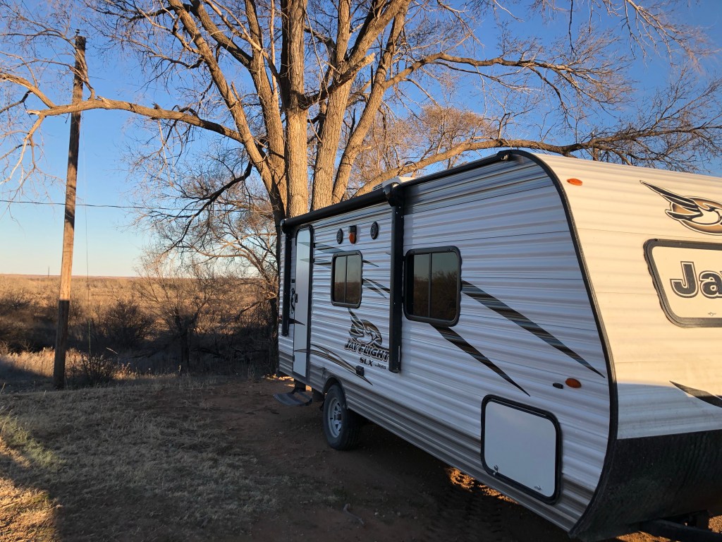 The first night finds us at Panfork Camp in Wellington, TX.  We will overnight here and will try to make the last leg tomorrow and arrive in Spicewood, TX.  It did get to 40 degrees today but not all that warm with the Northerly breeze.