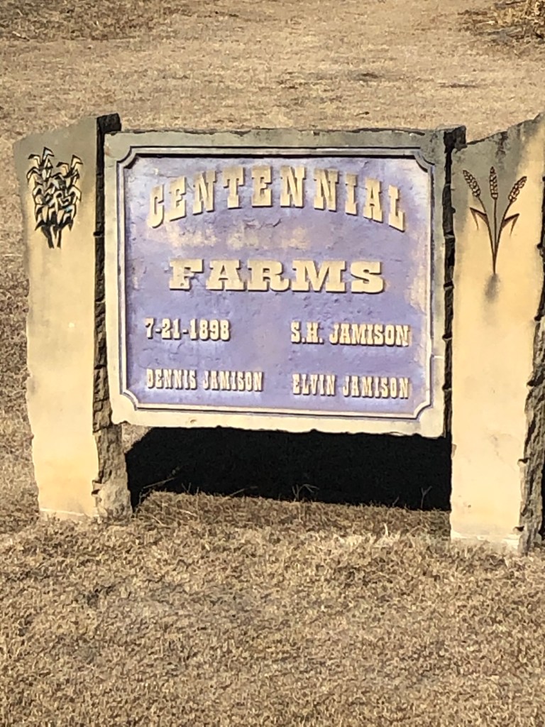 The quote from President Truman is about Swedish settlers but the Jamison family had its roots in Scotland. My ancestors left their homes in Scotland and Ireland as a result of religious persecution. The land the farmer and I live on was homesteaded in 1898 by a young couple. Many of their relatives still live in this area. They filed the homestead claim certificate number 8599 on June 17, 1898. My great grandfather Samuel H. Jamison and his wife Mary Elizabeth (Molly) purchased the homestead from this couple just a short month after they filed. The date of purchase was July 21, 1898. Some of my family have lived on this property since that time. In 1998 it was recognized as a Centennial Farm.