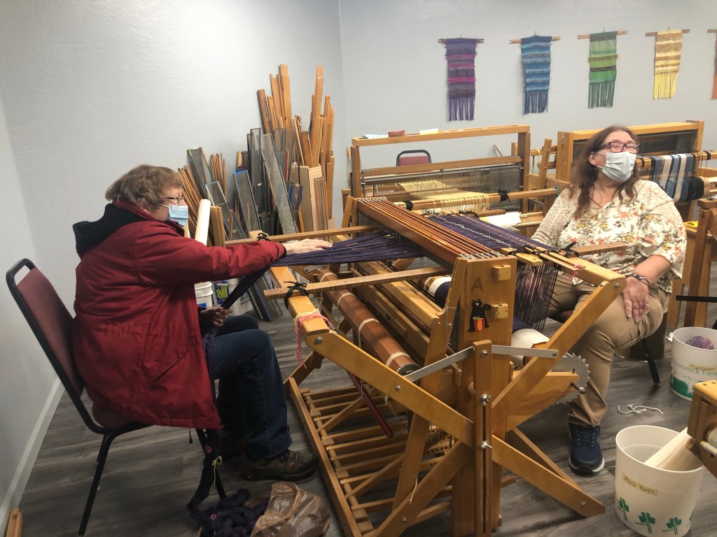 After work one afternoon we were able to go to the Rainbow Acres store and see all the beautiful things made by the Ranchers here. There are some really good paintings, some rugs, table runners, mug rugs and scarves made by the weavers here. Some 90 year old ladies come to thread the many weaving machines when they need to be threaded. They use old bed sheets and other fabrics to weave their beautiful designs. It is amazing what they can do and the beauty of it all. A stained glass company sends them all of their small pieces that they are going to throw away and they make wonderful stepping stones that sell very well. Some of the ranchers make jewelry and many other projects. I bought a memory bracelet that is silver and blue and Susan (one of the ranchers) was hoping that it was one she made. I hope it is too.